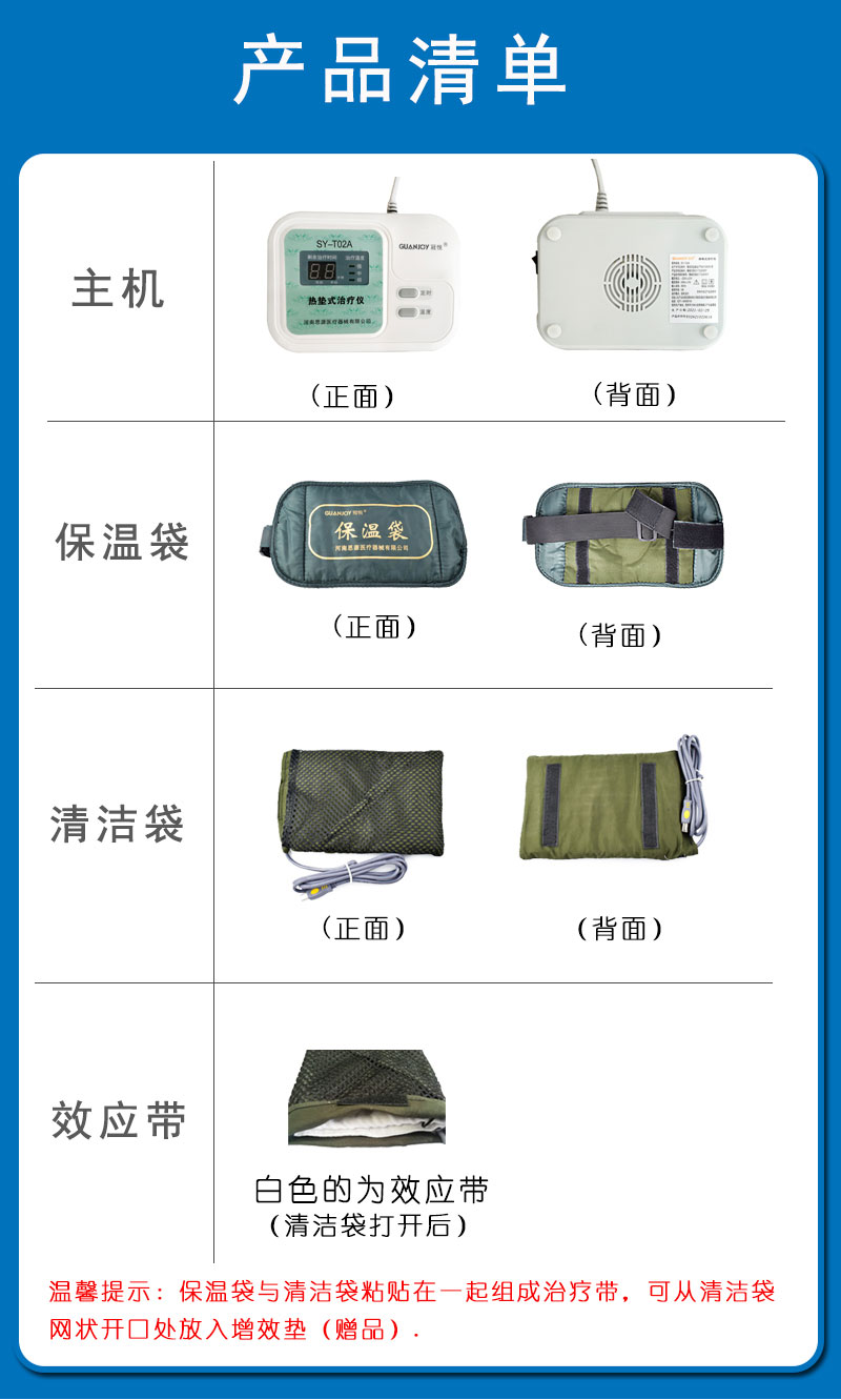治療帶由效應(yīng)帶、保溫帶和清潔袋三部分組成。