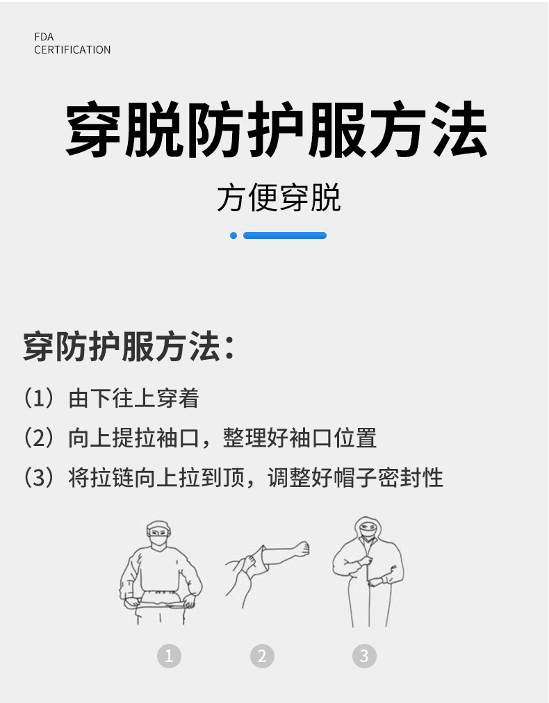 醫(yī)用防護(hù)服是有有效期的,放置時(shí)間過長(zhǎng)可能使防護(hù)性能下降。市場(chǎng)上絕大多數(shù)醫(yī)用防護(hù)服均為非織造布制成的一次性防護(hù)服,使用后即廢棄,無需消毒、洗滌。穿戴防護(hù)服前應(yīng)檢查是否有破損,使用后按照醫(yī)療廢物處理。