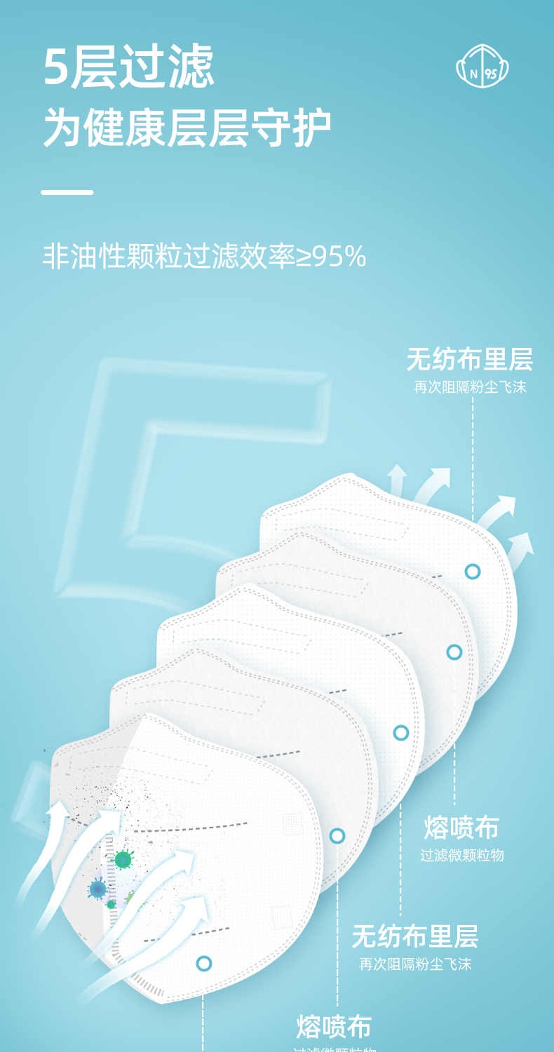 ①KN類,適用于過濾非油性顆粒物。KN90口罩要求過濾效率≥90%,日常最常見的KN95口罩過濾效率要求≥95%;防護(hù)級別更高的KN100過濾效率高達(dá)99.97%。由此可見,美國N95口罩跟中國的KN95口罩,對過濾效率的標(biāo)準(zhǔn)是一致的,必須≥95%。比如國內(nèi)的瑞氪維爾Raxwell KN95口罩RX9501,嚴(yán)格執(zhí)行國標(biāo),非油性顆粒物過濾效率≥95%,堅持做專業(yè)防護(hù)。
