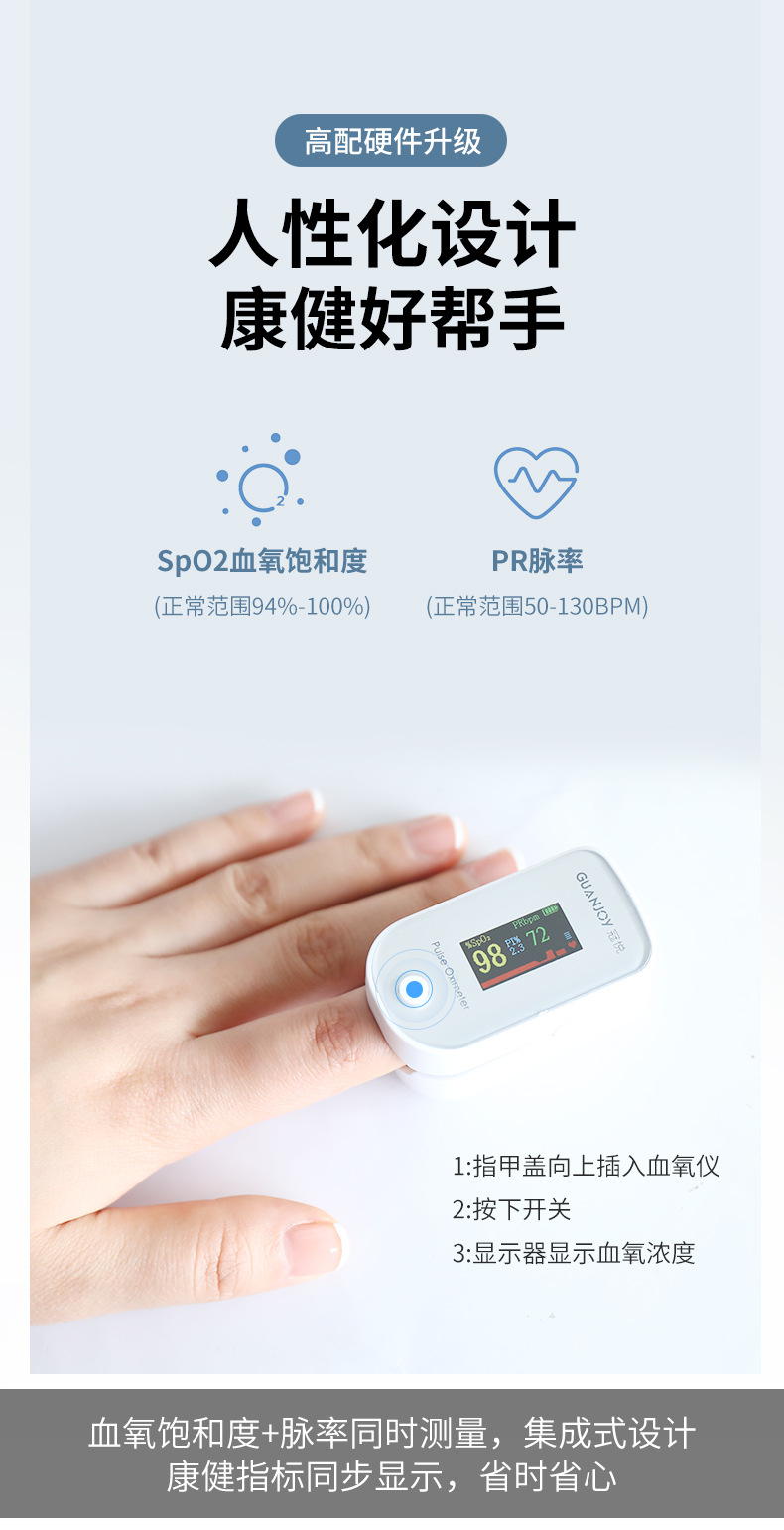 使用方便快捷:不用去醫(yī)院采血,不必承受皮肉之苦,只要往手指上輕輕一夾,3秒鐘你就能準(zhǔn)確的看到你的身體健康狀況。