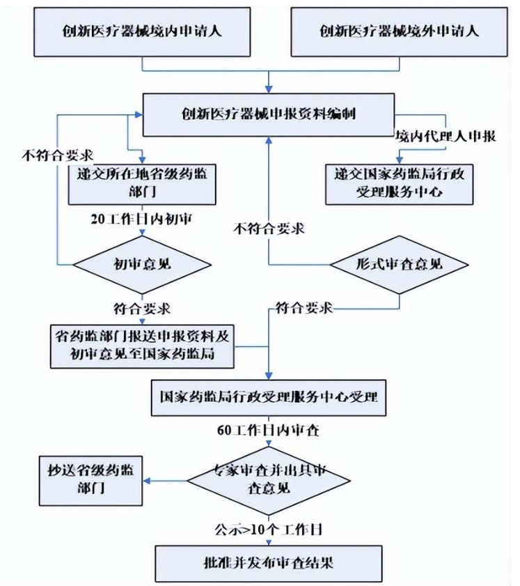 依據(jù)《創(chuàng)新醫(yī)療器械特別審查程序》及醫(yī)療器械相關(guān)法規(guī)規(guī)定,國內(nèi)外創(chuàng)新醫(yī)療器械注冊人在確保產(chǎn)品安全、有效的前提下,提交相應(yīng)技術(shù)資料及證明性文件,提出創(chuàng)新醫(yī)療器械特別審查申請,進(jìn)入創(chuàng)新醫(yī)療器械特別審查程序的注冊申請,審評早期介入并有專人負(fù)責(zé),在產(chǎn)品檢測、體系核查及技術(shù)審評優(yōu)先安排。