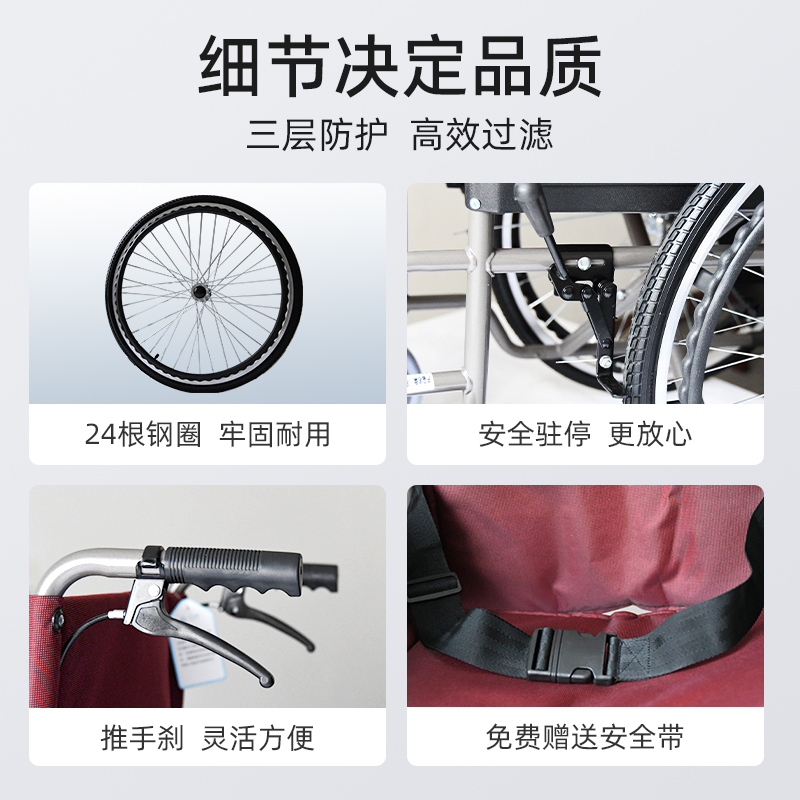 河思源手動(dòng)輪椅車SY-LY1-0120酒紅色