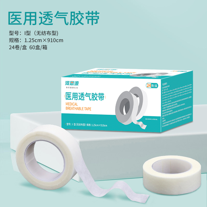 河思源醫(yī)用透氣膠帶,根據(jù)規(guī)格分為兩個型號:1.25cm*910cm,2.5cm*910cm;根據(jù)基底型號可以分為:I型 (PE型)、II型(無紡布型)。