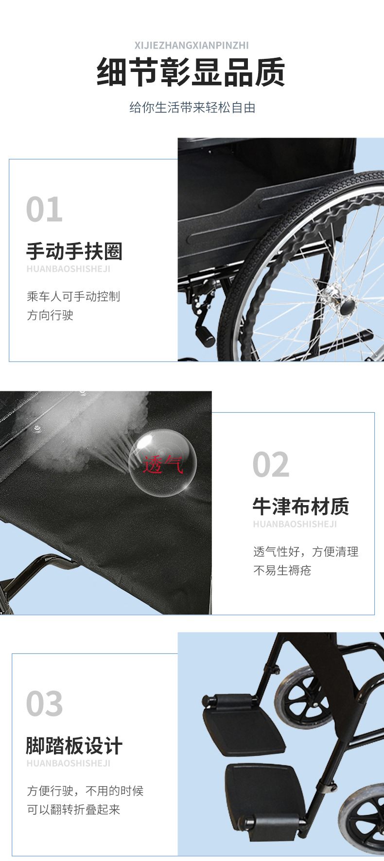 同款式的小輪輪椅優(yōu)點:折疊攜帶更節(jié)省空間,重量略輕,攜帶更方便。但是需要別人推行前進,浪費人力且對使用者起不到鍛煉的作用。在選購輪椅時可根據(jù)使用者的實際情況進行選擇。